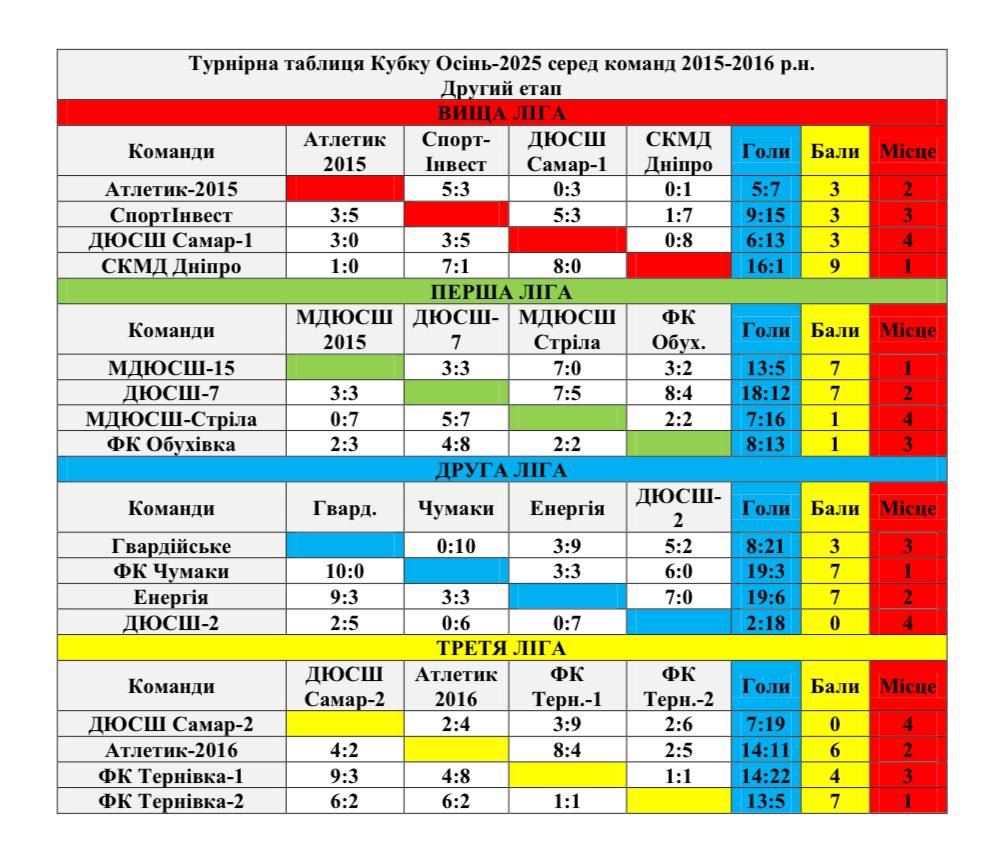 Перше та друге місце Вищої ліги зайняли команди ФК Обухівка та ДЮСШ Самар-2014 відповідно.